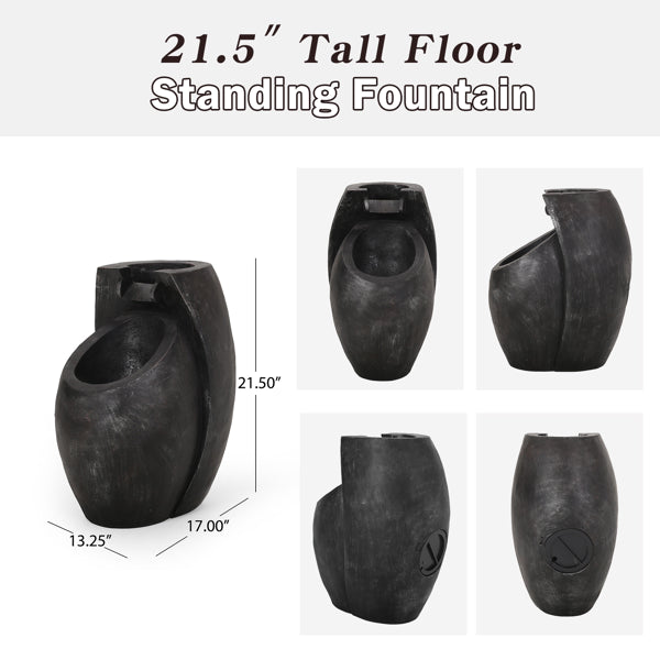 This 21.5” floor-standing water fountain brings the soothing sound of flowing water and sleek, modern design to your garden, patio, or indoor sanctuary. Two cascading tiers create a relaxing rhythm, while its compact height fits perfectly anywhere you want a touch of calm.