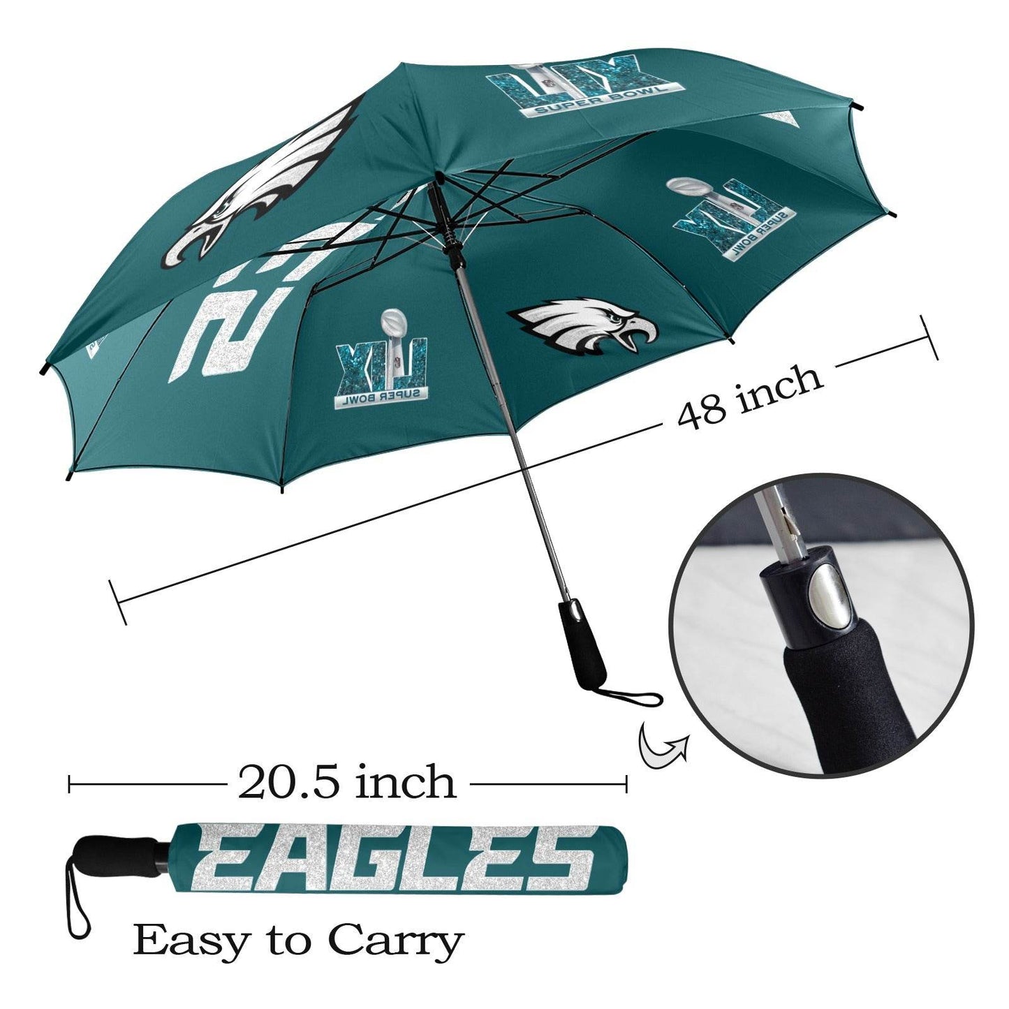 Stay dry with the your Choose Your Team Semi-Automatic Foldable Umbrella! Crafted from 100% polyester waterproof fabric, it’s tough and ready to repel rain. Compact at 20.5" when folded, it’s perfect for popping into your bag. With 8 sturdy fiber ribs, this umbrella stands strong against the wind. Just one hand and one second to open it wide—48 inches of rain-blocking coverage! Plus, the big foam handle feels comfy in your grip. To keep it fresh, simply air dry open and wipe clean with a damp cloth. Rain or shine, you’re covered!